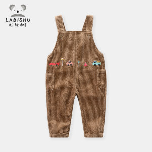 拉比树新款童装裤子宝宝休闲裤儿童长裤 男童工装袋灯芯绒背带裤