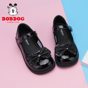 巴布豆童鞋女童公主鞋春秋新款真皮软底英伦风单鞋儿童黑色小皮鞋