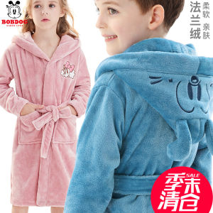 巴布豆儿童浴袍法兰绒男童睡衣秋冬季宝宝睡袍珊瑚绒女童中大童装
