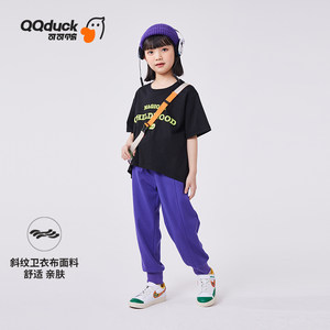 QQduck可可鸭女童裤子春秋运动裤2023新款中大童薄卫裤男童休闲裤