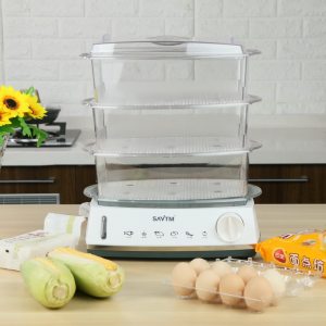狮威特电蒸锅家用超大容量三层电蒸笼食品级蒸笼盘蒸菜消毒防干烧