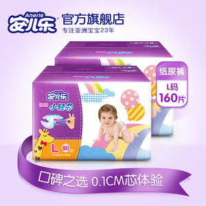 安儿乐小轻芯纸尿裤L80*2 安尔乐超薄透气男女宝春夏尿不湿官网