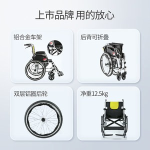 鱼跃轻型轮椅车折叠轻便老人专用多功能残疾人代步手推车H062C
