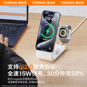 图拉斯小云团三合一无线充电器magsafe支架磁吸二合一底座适用苹果15手机iPhone新款iWatch手表耳机AirPods座