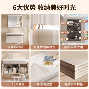 箭牌浴室柜陶瓷一体盆奶油风卫生间洗漱台卫浴洗脸盆洗手盆柜组合