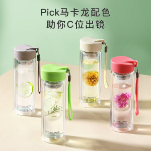 富光玻璃杯双层带盖办公水杯男女时尚泡茶杯创意便携防漏情侣杯子