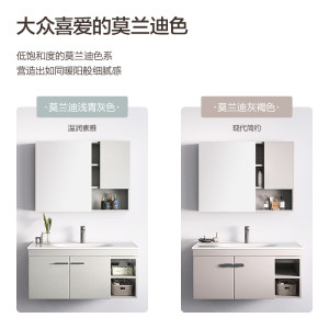 安华卫浴小户型现代简约陶瓷一体盆奶油风色原实木镜浴室柜莫兰迪