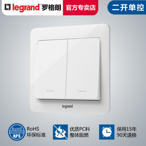 TCL罗格朗开关面板逸典玉兰白双开单控二开单控带荧光装饰灯开关