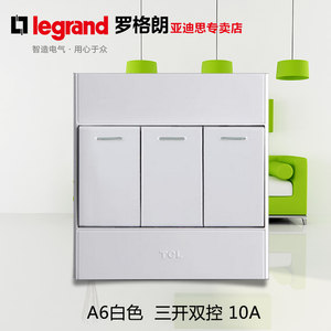 TCL罗格朗开关插座86型电源墙壁家用A6系列三开三位三联双控开关