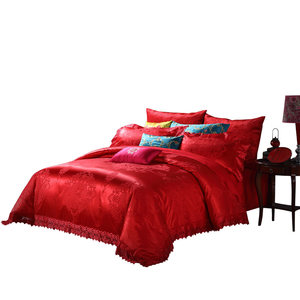 梦洁家纺提花婚庆四件套蕾丝结婚套件被套床单婚庆丝滑套件1.8米