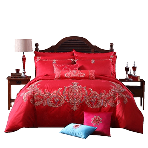 梦洁家纺婚庆四件套提花绣花被套床单喜庆结婚套件1.8米床上用品