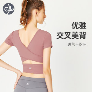 青鸟瑜伽服女自带胸垫跑步专业运动短袖长袖紧身上衣健身自组套装