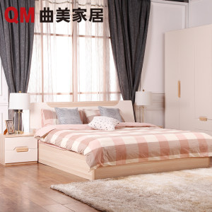 曲美家具家居 现代北欧舒适储物婚床 卧室家具 箱体单人双人床W