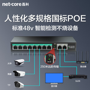 磊科S6P 5/8/10/18口百兆千兆poe交换机监控专用网络交换器分流器4口供电分线器集摄像头防雷AI智能钢壳
