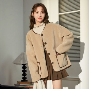 唐狮冬季新款仿羊羔毛外套女秋冬美拉德温柔慵懒风仿麂皮绒女上衣