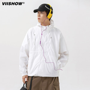 VIISHOW夏季纯色特薄防晒衣夹克男加日系潮牌连帽宽松外套防晒服