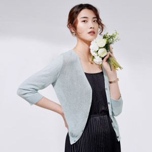 初棉苎麻棉夏季薄针织开衫 轻薄桂花针V领防晒开衫女薄款小外套