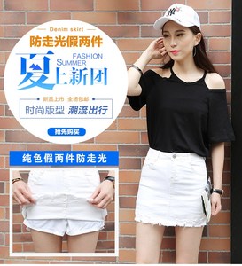 七七之缘2020春夏新款女装 黑色白线边百搭高腰显瘦女裙裤半身裙