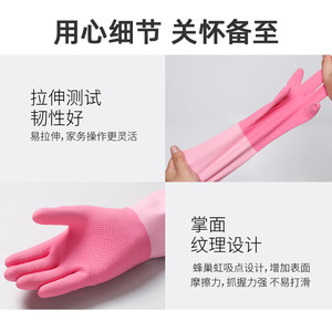美丽雅洗碗手套家务洗衣服加绒厚保暖女防水冬季厨房清洁橡胶耐用