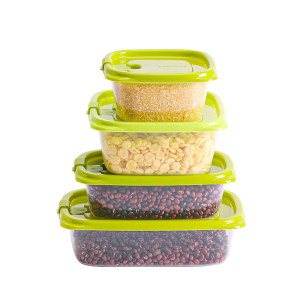 茶花保鲜盒塑料密封便当便携微波炉饭盒冰箱水果盒收纳加高正方形