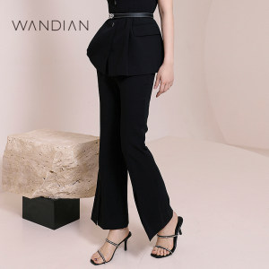 婉甸黑色九分喇叭裤夏季新品通勤微喇裤休闲裤脚口开叉1232P09SJ1