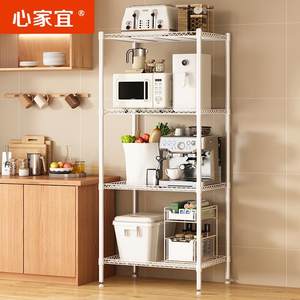 心家宜厨房置物架落地多层家用多功能不锈钢收纳架微波炉储物架子