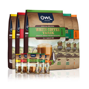新加坡owl猫头鹰咖啡速溶白咖啡粉特浓三合一马来西亚进口100条装