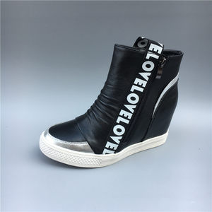 公牛世家秋冬季真皮高帮鞋圆头厚底内增高头层牛皮侧拉链女鞋皮靴