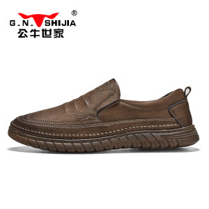 公牛世家豆豆鞋男士透气真皮2024新款休闲皮鞋一脚蹬软底男鞋商务