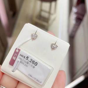 香港专柜六福珠宝新款T字钻石耳钉 999黄金镶钻T耳环 大牌风黄金
