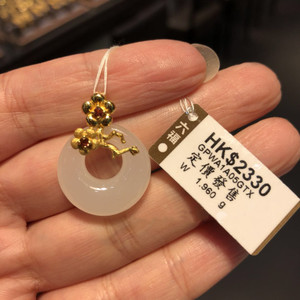 网红同款!香港六福珠宝代购AU990足金葫芦镶粉玉坠招财葫芦吊坠