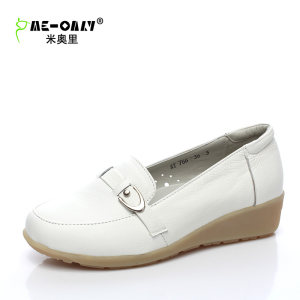 米奥里护士鞋白色坡跟牛皮牛筋底低帮休闲女单鞋妈妈鞋夏季孕妇鞋