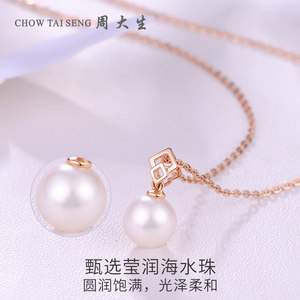 周大生珍珠吊坠18K玫瑰金海水珍珠挂坠可配项链送女友生日礼物