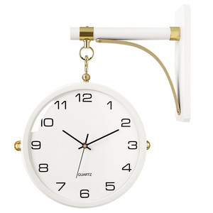 汉时欧式轻奢挂钟表客厅简约双面时钟静音创意两面白色挂表hds03