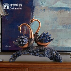 橡树庄园美式情侣天鹅摆件创意家居客酒柜厅电视柜装饰品工艺品家