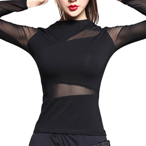 飞魅 拉丁舞上衣牛奶丝拼接网纱舞蹈衣服 女成人拉丁舞练功服上装