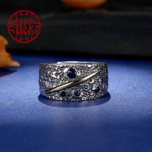 银导者S925银戒指男单身霸气潮人个性复古指环宽星空开口银饰情侣