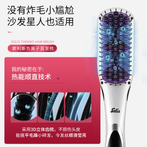 瑞士solis索利斯直发梳负离子家用不伤发一梳直发梳神器美发梳子