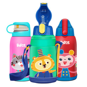 波啡儿童保温杯带吸管两用小学生水壶男女宝宝防摔防漏幼儿园水杯
