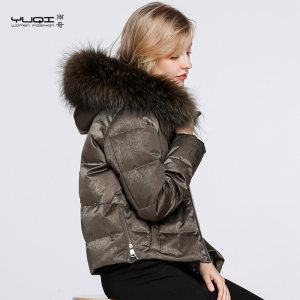 雨奇欧洲站新款2017短款羽绒服女大毛领加厚连帽休闲羽绒衣外套潮