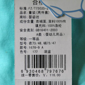 特价婴姿坊冬装新款女童装1773太空棉加厚保暖内衣薄棉袄套装73码