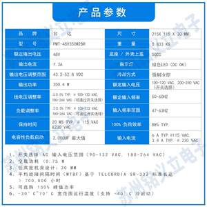 PMT-48V350W2BR 台达开关电源48V7.3A全新原装直流工业电源变压器