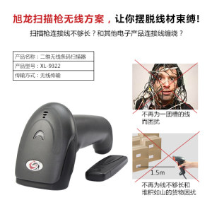 旭龙XL-9322无线二维码扫描枪快递专用把巴枪农资店条码机枪仓库盘点超市扫码枪手机支付条形码扫描器带存储