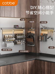 卡贝厨房壁挂置物架刀具架锅盖架一体收纳架挂钩免打孔调料架挂件
