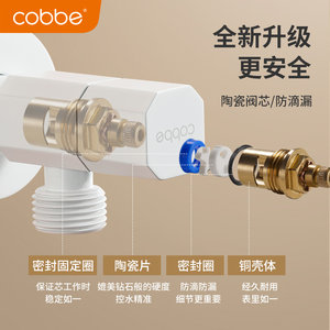 卡贝哑白角阀一进二出双控水龙头家用马桶洗衣机双用三角阀分水器