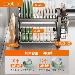 卡贝厨房置物架台面不锈钢碗碟收纳架沥水碗架碗筷碗盘家用多功能