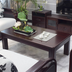 澳颜莱实木茶几双叶家具全实木茶几现代中式轻奢客厅家用实木玻璃面茶几 大茶几紫檀色 组装