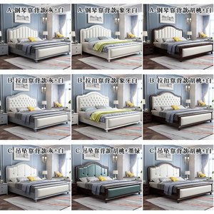林氏物语现代简约美式1.8米实木床婚床轻奢双人床主卧1.5M公主床
