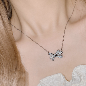 fairy格拉夫轻奢蝴蝶结项链气质名媛水滴锆石蝴蝶结满钻耳坠戒指