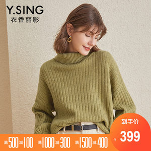 衣香丽影2019冬装新款时尚喇叭袖打底长袖高领针织毛衣女宽松外穿